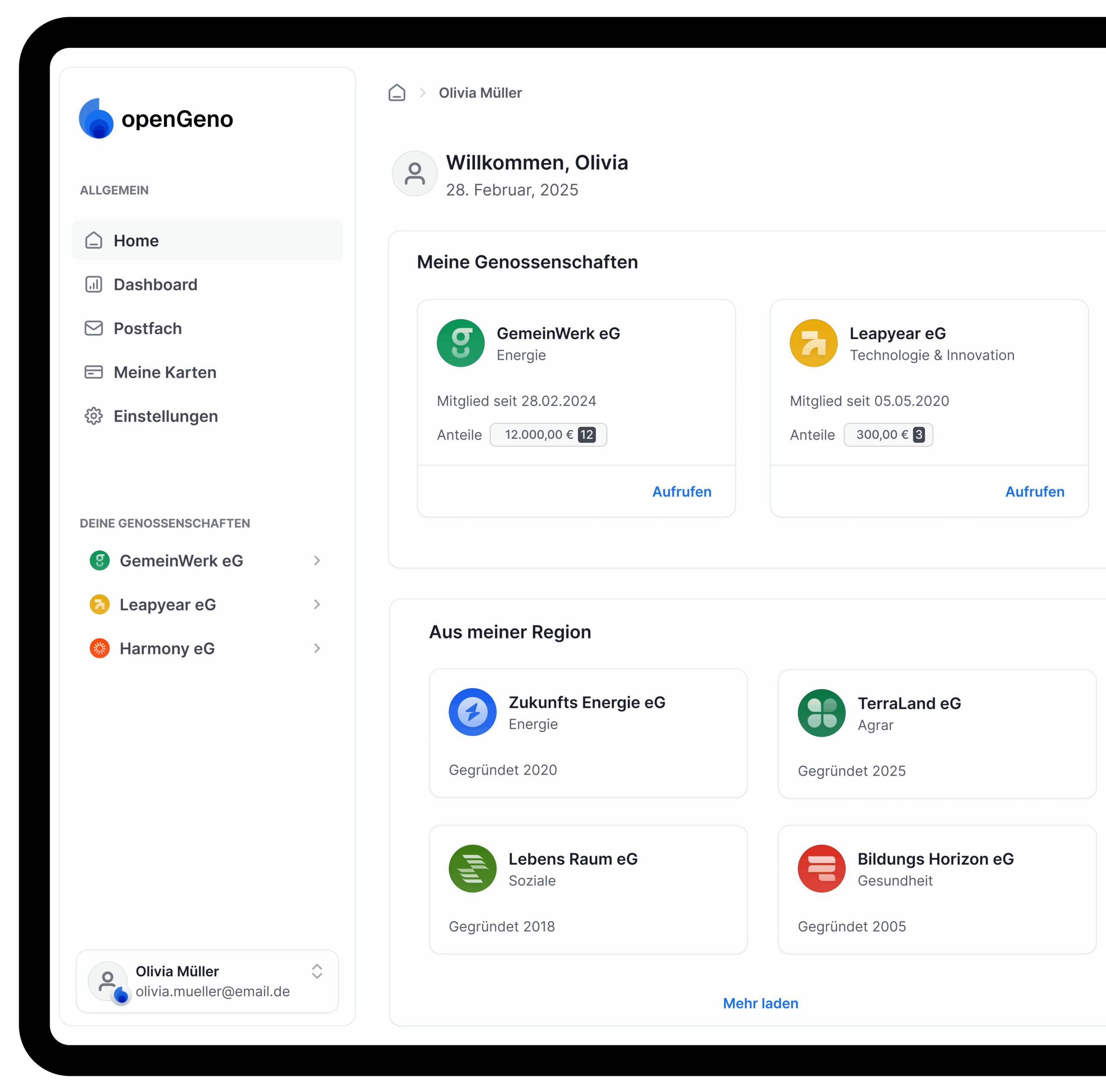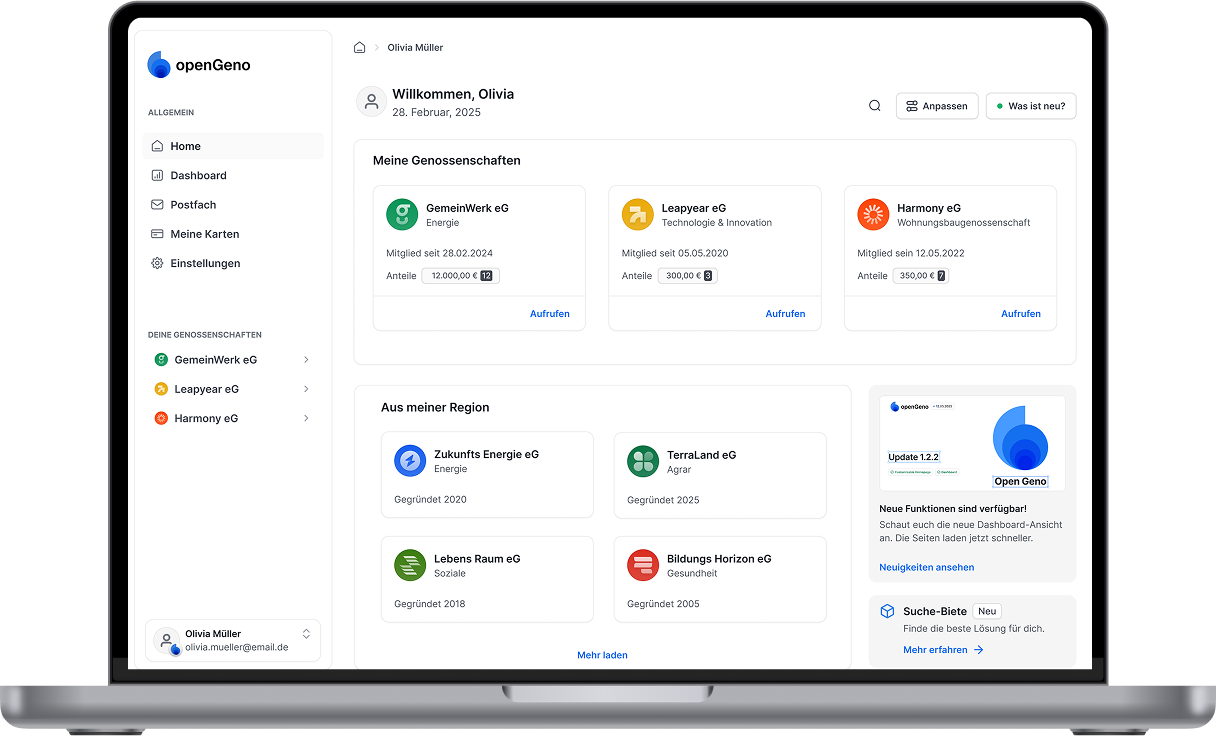 openGeno ist die Plattform für moderne Genossenschaften: modular, praxisnah und kooperativ entwickelt.